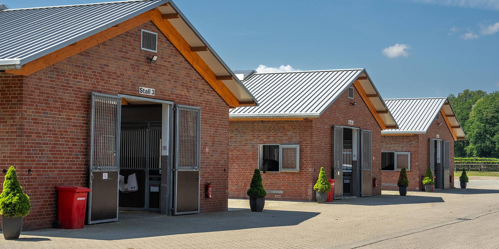 Unsere moderne und großzügige Anlage erfüllt die Anforderungen für eine gute, pferdegerechte Ausbildung und Vorbereitung auf zukünftige Aufgaben Ihrer Pferde. Jede Box der modernisierten Stallgassen verfügt seitdem über ein großes Außenfenster. Die Boxen sind hell und haben eine gute Luftzirkulation. Zu jeder Box gehört außerdem ein Sattelschrank.