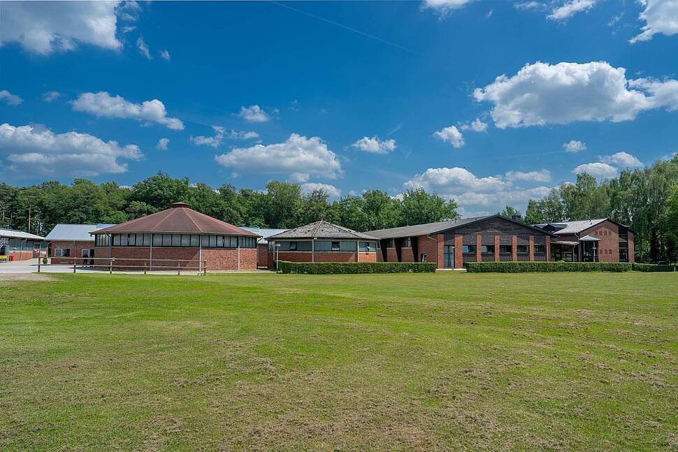 Insbesondere junge Pferde finden bei uns Platz für ihre ersten Schritte in der Ausbildung, für die nächsten Entwicklungsschritte sowie für den Verkauf. Unser Ziel ist eine dem Alter entsprechende, pferdegerechte Ausbildung nach den Grundsätzen der klassischen Reitausbildung. Ein Team aus erfahrenen Pferdewirten klassischer Reitausbildung sowie Haltung und Service kümmert sich um das Wohl aller Pferde. Auf unserer modernen und im Jahr 2022 renovierten Anlage stehen dafür etwa 100 geräumige Boxen, Paddocks und Weiden, zwei Reithallen, eine Führanlage, eine Rennbahn, mehrere Außenreitplätze sowie ein Rasenplatz für Schauen zur Verfügung. Zudem ergeben sich aus der Zusammenarbeit mit der benachbarten Westfälischen Reit- und Fahrschule zusätzliche räumliche Möglichkeiten, die insbesondere den Bereich der Jungpferdeausbildung ergänzen und erweitern.