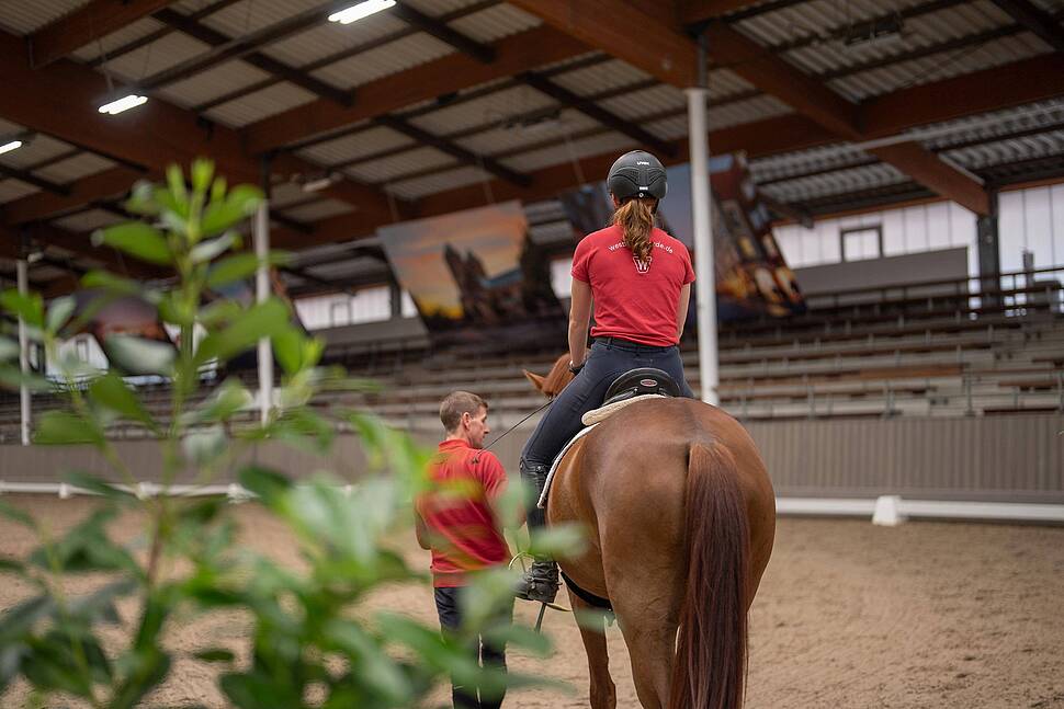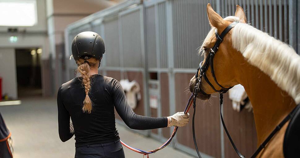 Thanks to the high demand and the cooperation with the Westphalian Riding and Driving School, we were able to further expand our young horse training programme. With an additionally rented stable lane with 16 permanent boxes and adjoining paddocks, we can accept more young horses for breaking in at the Westphalian Riding and Driving School. The youngsters can take their first steps as riding horses there in a quiet atmosphere.