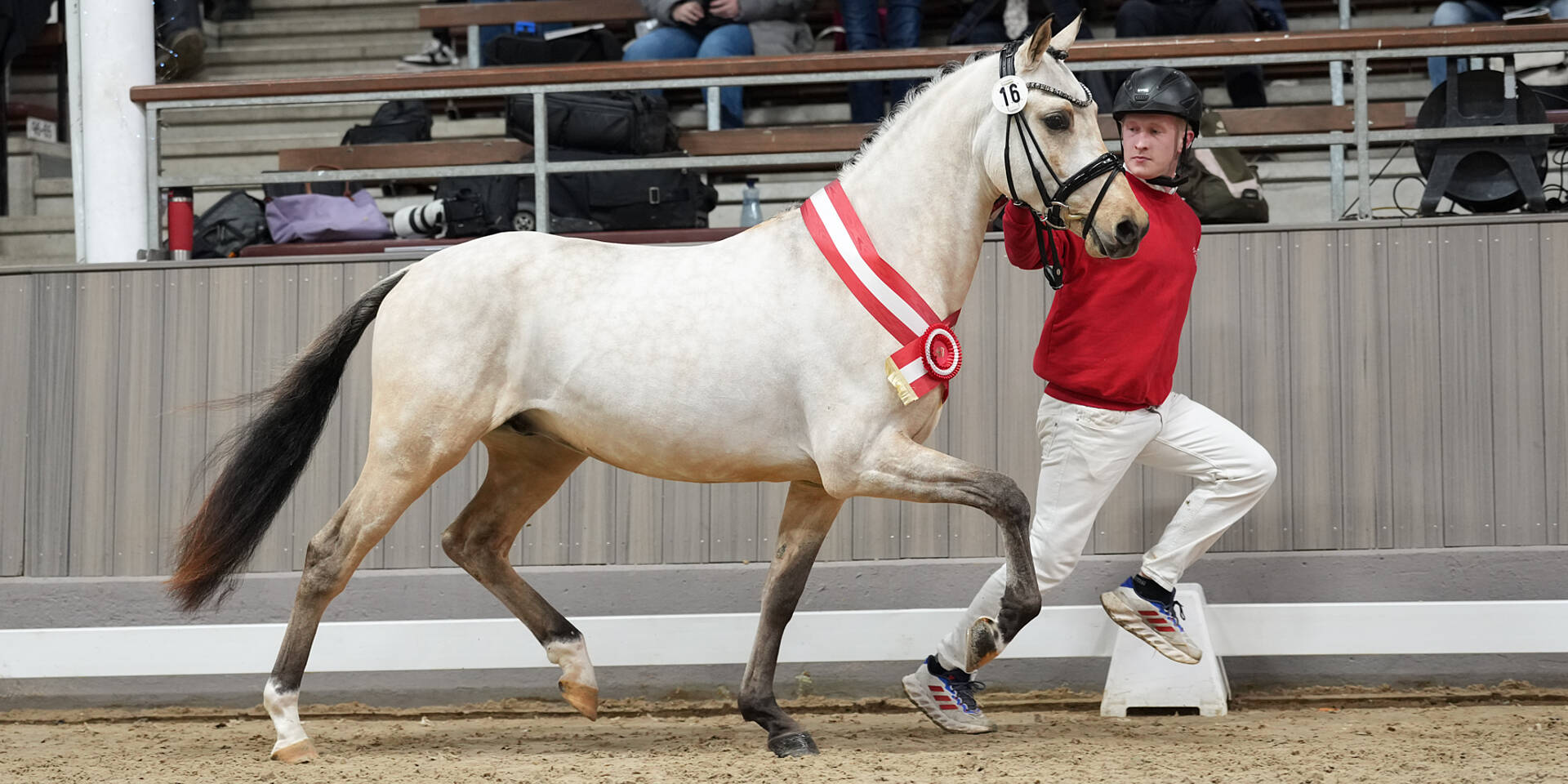 Als 2. Reservesieger geehrt wurde zum einen ein modern aufgemachter Dreidimensional I AT/Dimension AT NRW-Sohn. Züchterisch verantwortlich ist die ebenfalls als Ausstellerin in Erscheinung tretende Emily Hülsey aus Kaarst. Außerdem empfehlen für den Titel des 2. Reservesiegers konnte sich der aus der Zucht und im Besitz von Frank Moormann, Wettrup, stammende Fuchsisabell-Sohn des Golden Grey NRW/Hesselteichs Golden Dream.