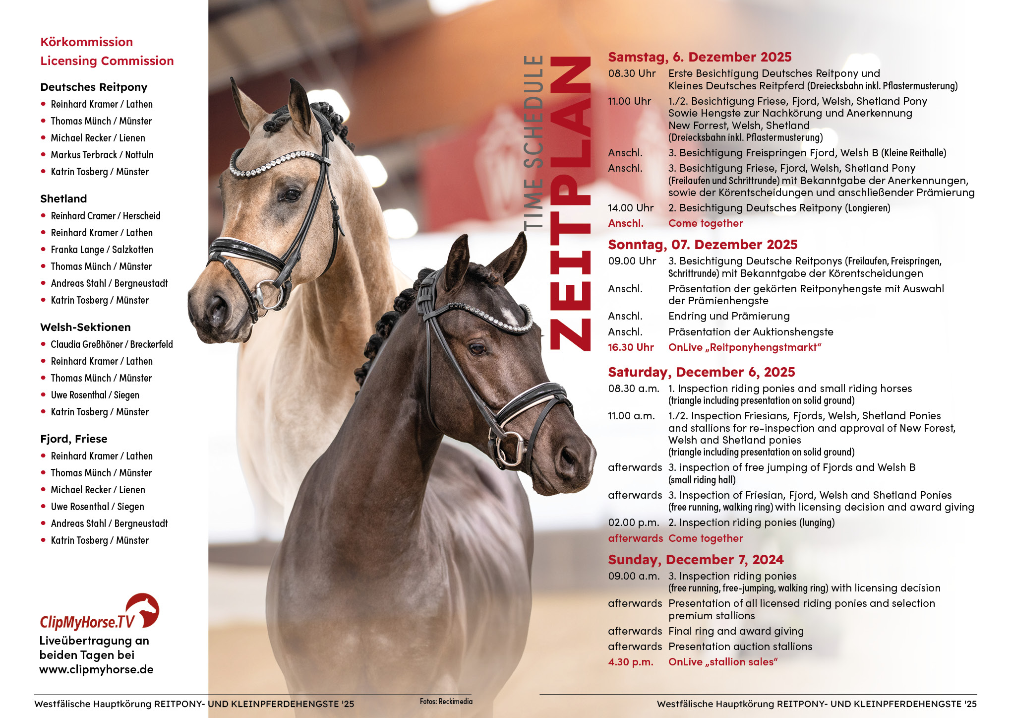 Zeitplan Westfälische Hauptkörung für Kleinpferdehengste 2025